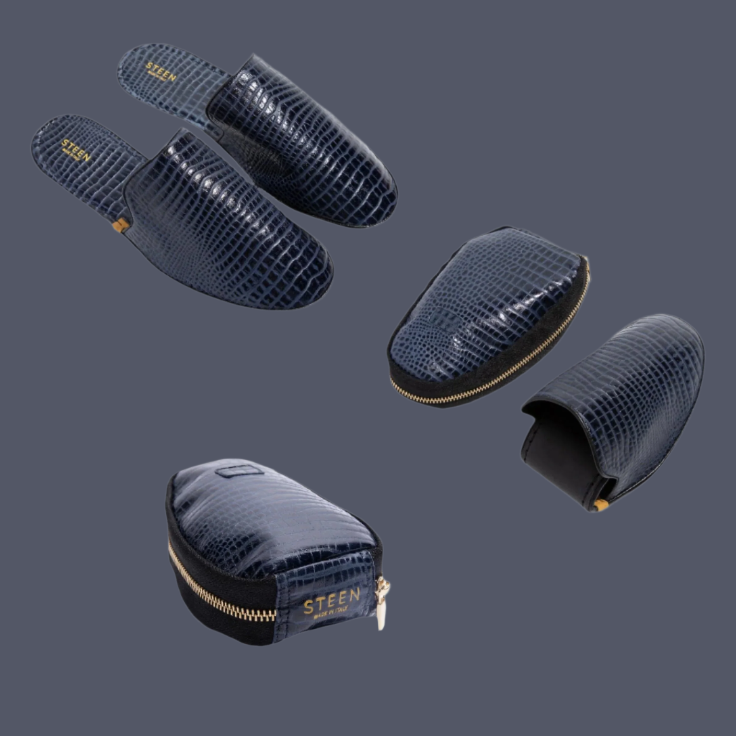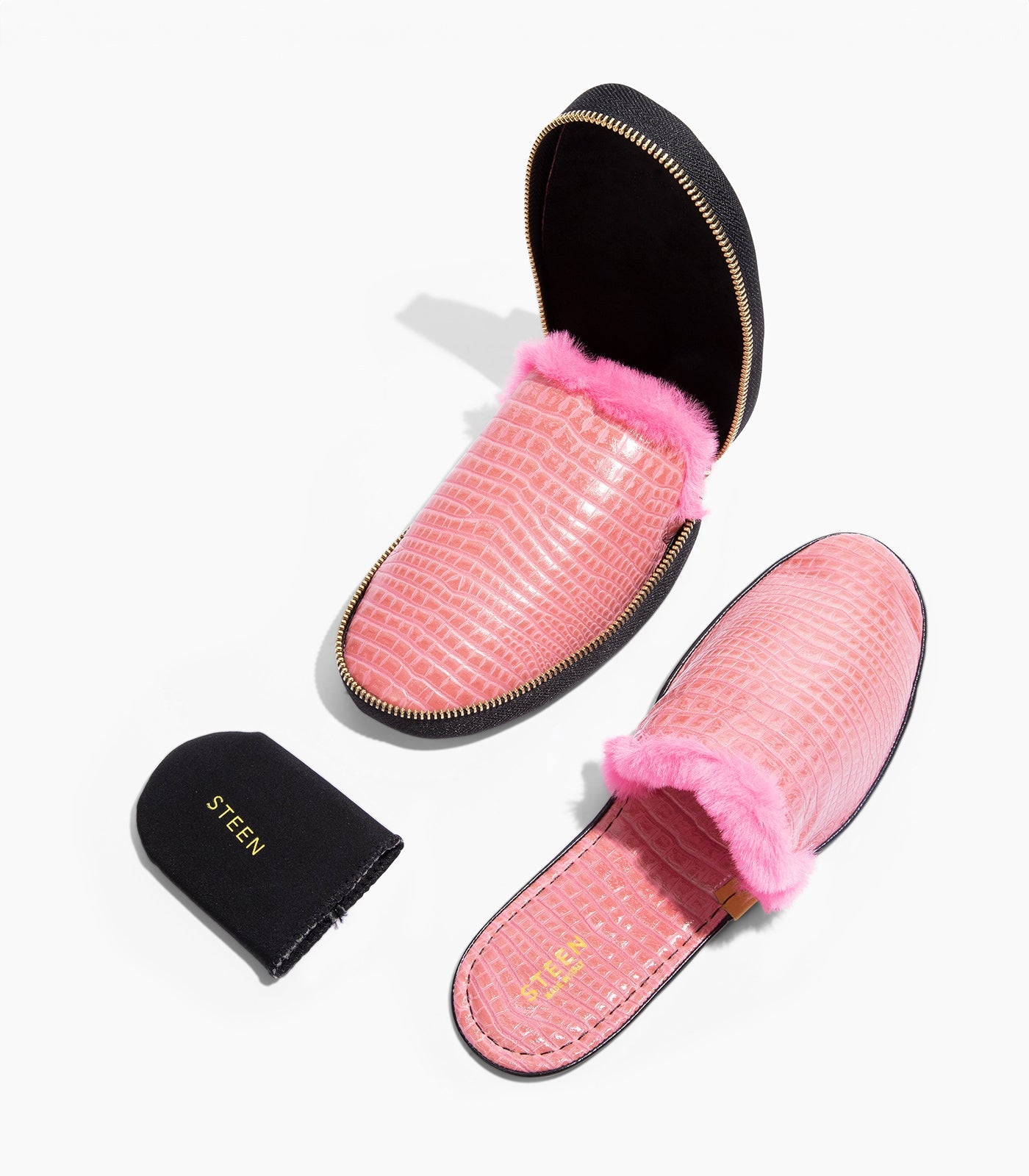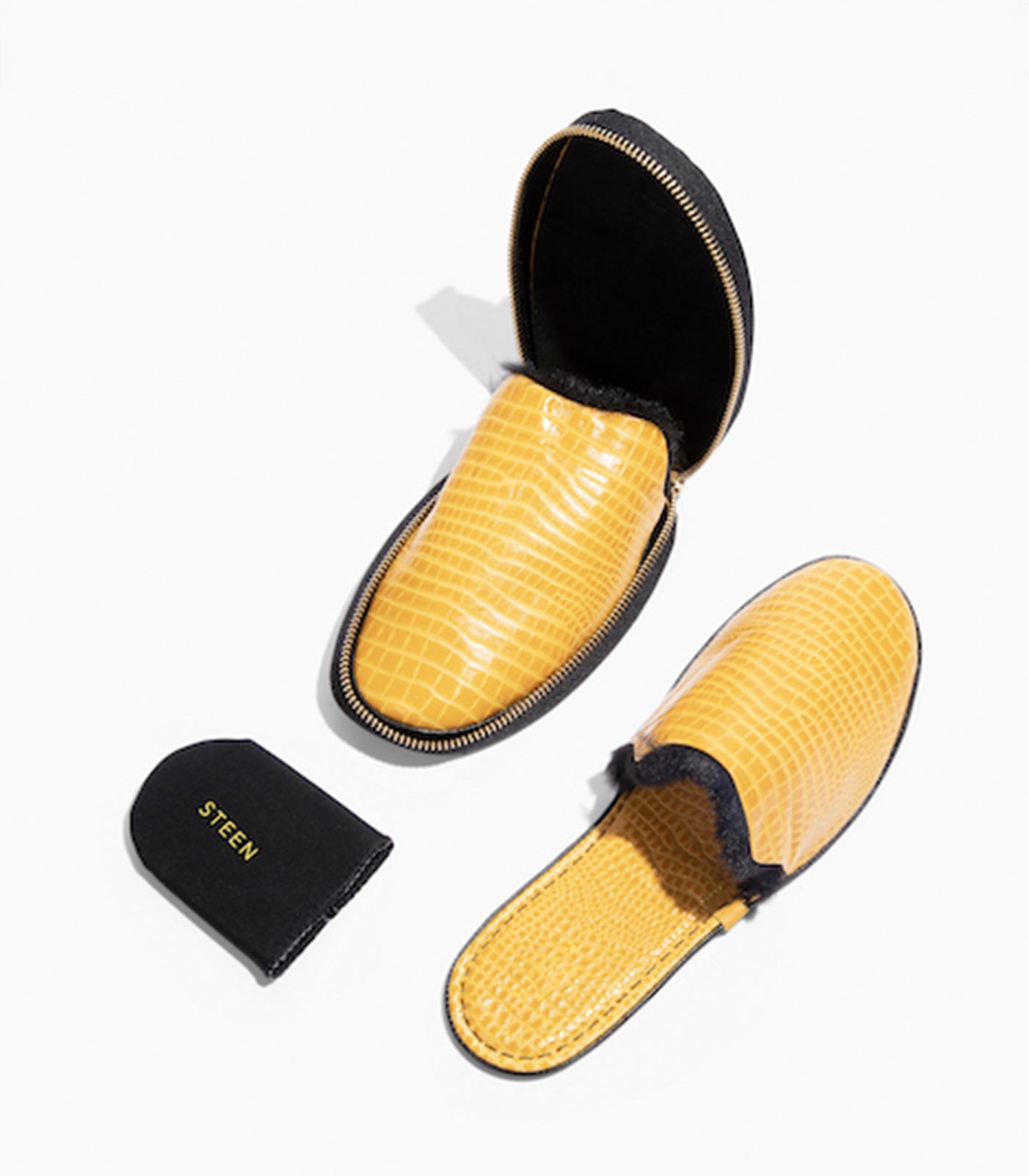 Die luxuriösen faltbaren Hausschuhe von STEEN verkörpern Komfort und Eleganz. Diese Hausschuhe wurden für anspruchsvolle Reisende und Stubenhocker gleichermaßen entworfen und verfügen über ein faltbares Design, mit dem sie einfach in einem schicken, minimalistischen Reißverschlussbeutel verpackt und getragen werden können. Die Hausschuhe sind ideal für den Übergang von zu Hause auf Reisen. Sie können im Handumdrehen auseinandergefaltet und die Fersenmanschette entfernt werden, was ein nahtloses und stilvolles Erlebnis gewährleistet.