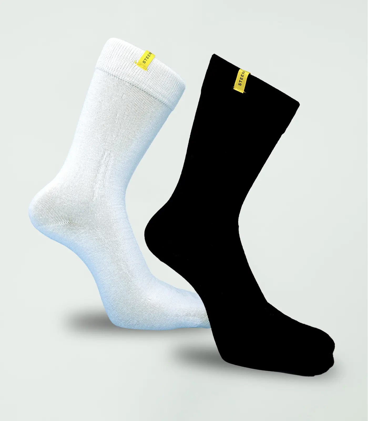 STEEN Bamboo Socks er fremstillet af førsteklasses bambusfibre og tilbyder uovertruffen blødhed, åndbarhed og holdbarhed. Uanset om de er på kontoret, i fitnesscentret eller derhjemme, giver disse sokker den perfekte blanding af stil og komfort.